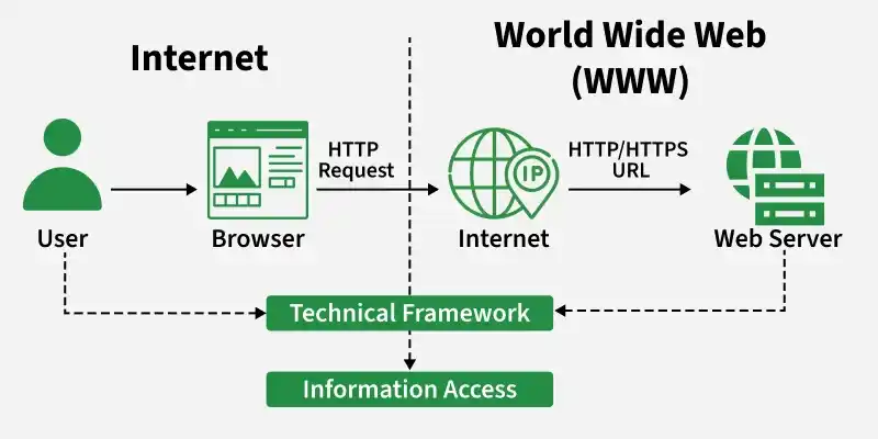 Global connectivity and easy access to information across interconnected networks and web pages are made possible through the Internet and World Wide Web (WWW).